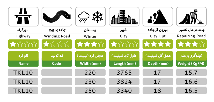 عرض های تولیدی: 220 - 230 - 250 میلی متر.