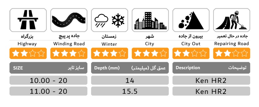 تایر روکشی کن رخ بهترین عملکرد خود را در ترابری شهری به اثبات رسانده است. به واسطه عملکرد خوب این محصول، رانندگانی که در بخش معادن کشور فعالیت دارند رغبت بیشتری برای استفاده از تایر روکشی کن رخ دارند. کارکرد این تایر در جادههای شوسه و خاکی نیز عملکرد بسیار خوبی داشته و اغلب رانندگانی که از این محصول استفاده مینمایند رضایت خود را نسبت به عملکرد خوب آن اعلام نمودهاند. این تایر در شرایط زمستانی نیز عملکرد قابل قبولی داشته و میتواند در شرایط زمستانی و یخبندان مورد استفاده قرار گیرد.