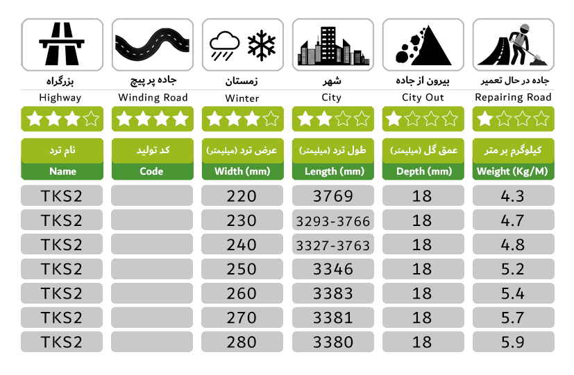 عرض های تولیدی: 220 - 230 - 240 - 250 - 260 - 270 - 280 میلی متر.